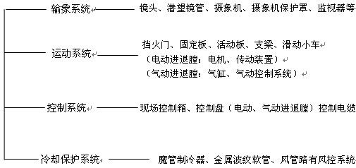 電動(dòng)及氣動(dòng)進(jìn)退膛電視監(jiān)視裝置,在冷卻風(fēng)出現(xiàn)斷風(fēng)故障時(shí),能自動(dòng)將潛望鏡管退出爐膛,以免燒壞輸象系統(tǒng),操作人員也可在控制室內(nèi)通過控制盤上的操作按鈕或電腦控制潛望鏡管的進(jìn)退爐膛。